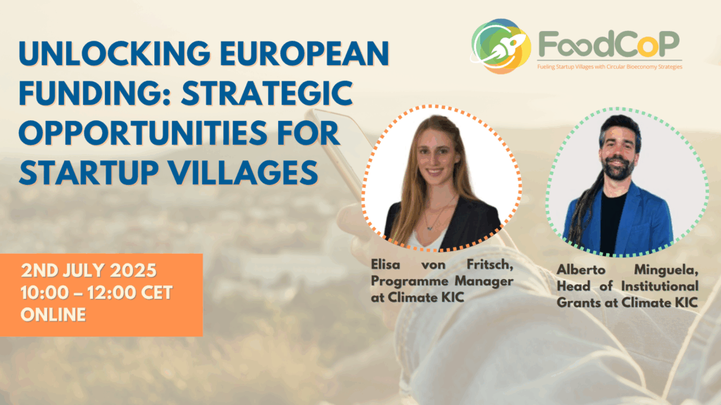 The FoodCoP project invites you to join Startup Villages Connect – Strategies for Impact & Growth, a two-part online workshop series designed to support rural innovators in communicating effectively and accessing European funding.